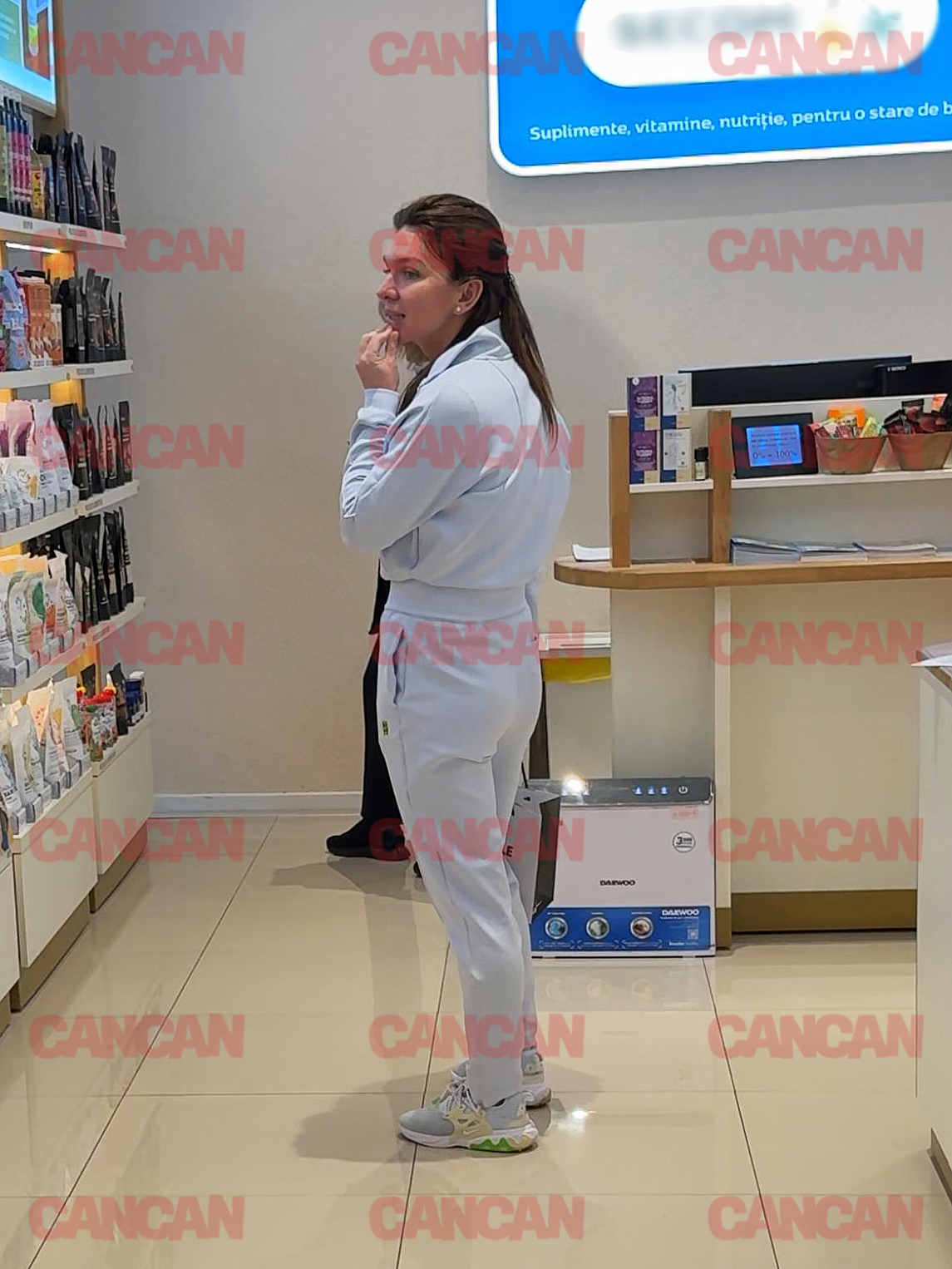 Imaginea e demnă de show-biz: Simona Halep îmbrăcată lejer, într-un trening comod, dă o lecție de simplitate și naturalețe. Nu are lookul rigid al celebrităților în fuste strânse sau tocuri – dar stătea la coadă la cabine cu grație de sportivă de top.